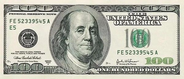 一百美元上印着的,是起草《独立宣言》,带领美国走向独立和民主的富兰克林。