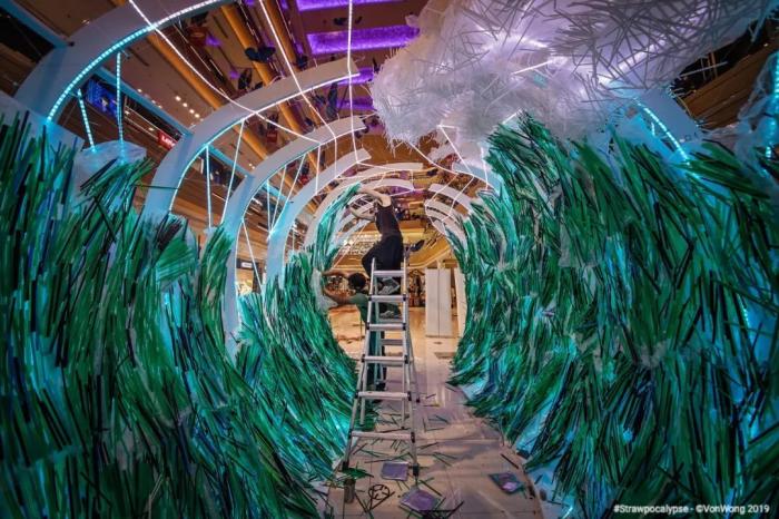 用168000根星巴克吸管搭起的“隧道”、用10000个饮料瓶堆砌的“海浪”、用数以吨计的电子垃圾建造如骇客帝国般的“末日祭坛”……