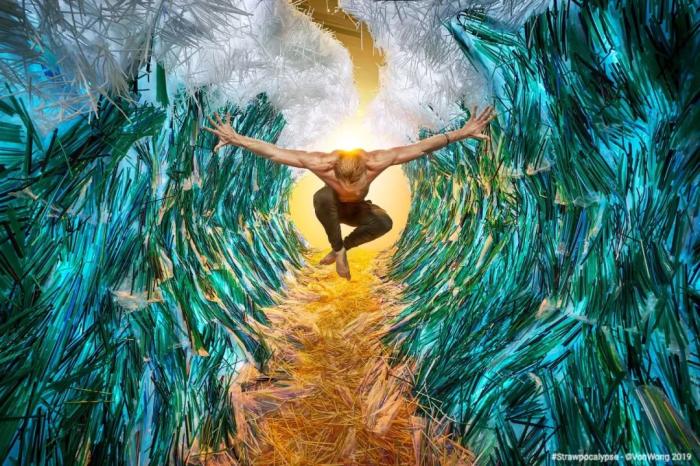 168000根塑料吸管,拼贴出了一个穿越到阳光沙滩的海浪;