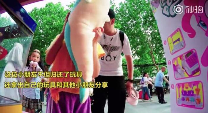 下面这位小姑娘,不但归还了玩具,在爸爸的鼓励下,还拿出自己的玩具和其他小朋友分享。