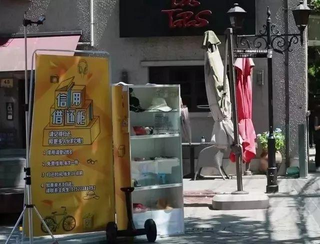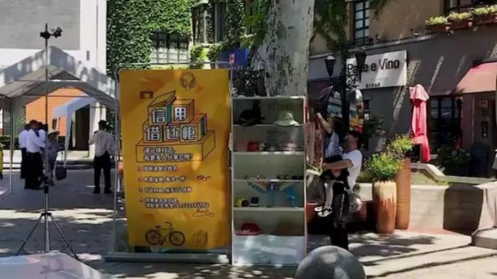 最近,上海街头出现了一个“信用借还柜”,柜子有五格,透明的双开门没有上锁,上面摆满了夏天的小玩具和一些实用工具。