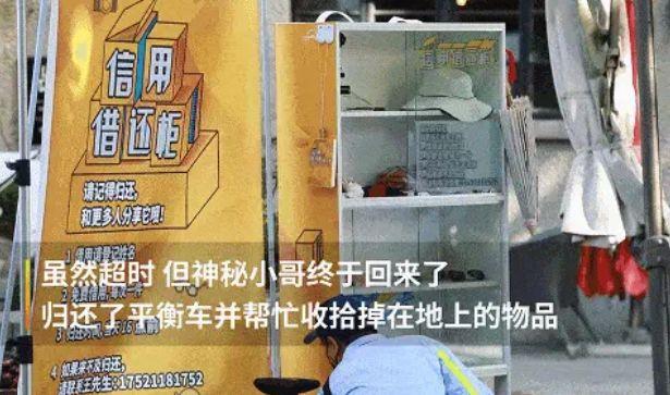 不仅归还了平衡车,还主动帮忙收拾掉在地上的物品。