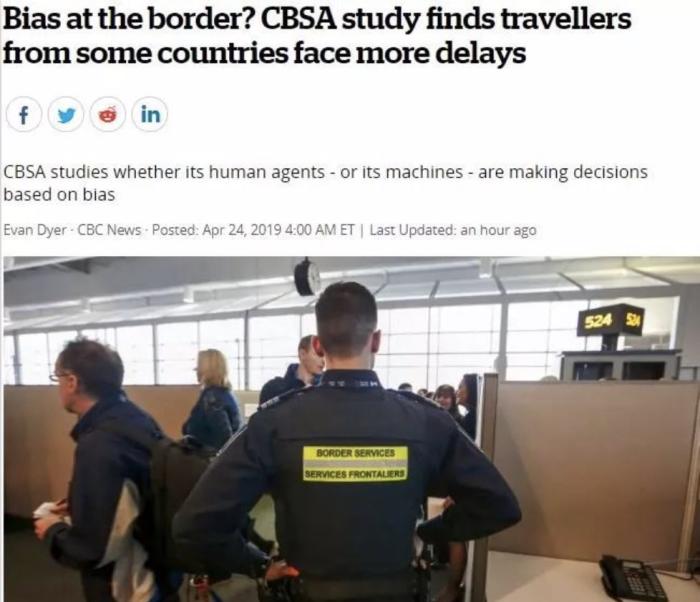 因为,除过检查时的不当行为外,2018年5月,CTV新闻发表报告称,二次检查的推荐对来自某些国家和地区的旅客有偏见。