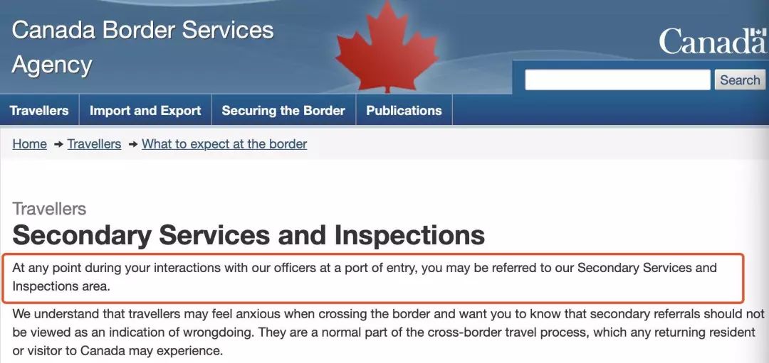 在加拿大,CBSA负责全国各个国际机场和港口的出、入境和海关及边防检查,在他们的官网上明确指出,任何游客或回国的加拿大人都有可能被二次检查。