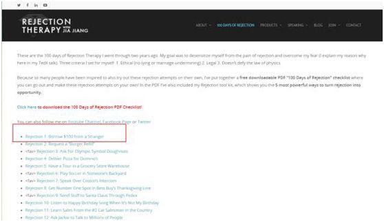 为了恐惧继续支配自己的生活,他在网上找到了“怎么克服被拒绝的恐惧”的“被拒治疗法”。