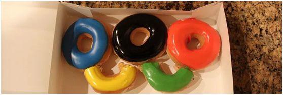 被拒绝的第3天,要求是把甜甜圈做成奥运五连环的模样。