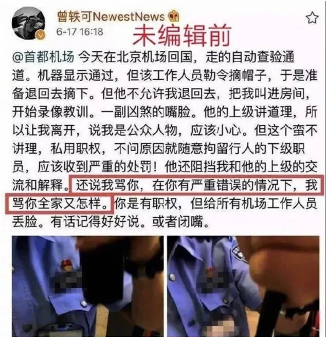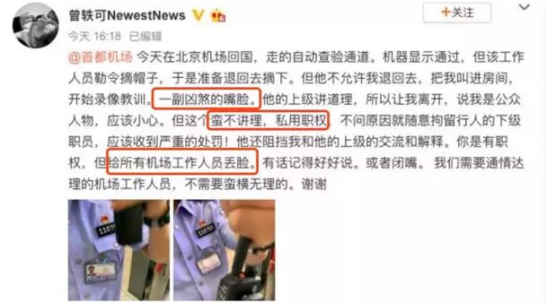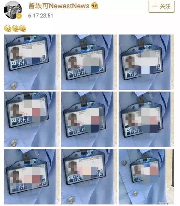 可曾轶可“找死”般的,当天夜上又在微博上发了9张工作人员的证件照片,上面很清晰地可以看到这位边检人员的姓名、照片和编号。