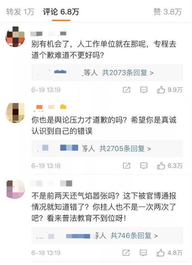 在她的道歉信下,点赞最高的前三条评论是这样的。