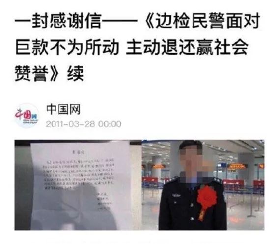 而被她挂上微博的这位民警呢,前几年还因为拾金不昧被着重表扬过。