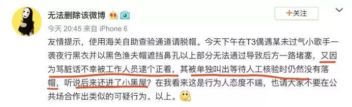 我们来看下网友的披露,说曾轶可在通过安检时,用黑色渔夫帽遮挡住鼻孔以上部分,因为无法通行导致后方堵塞,除此之外,还骂脏话。