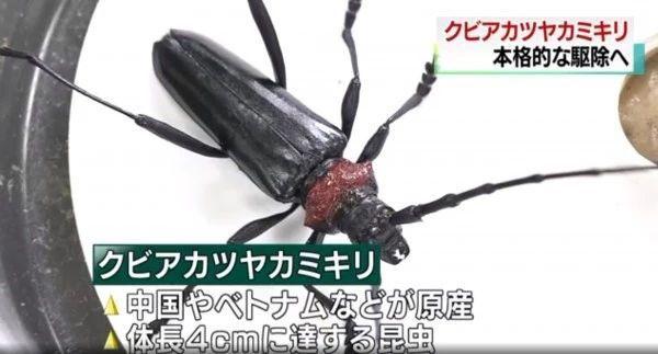 红颈长角天牛是一种来自我们国家和越南的物种,在日本没有任何天敌制约,它的入侵破坏了当地的生态平衡。