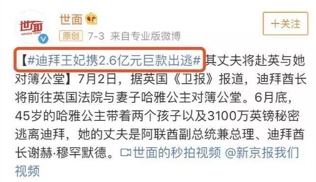 最近这几天,一则消息刷爆了朋友圈:迪拜王妃哈雅带着两个孩子和3100万英镑(人民币2.6亿)出逃英国,扬言要和自己的丈夫离婚。