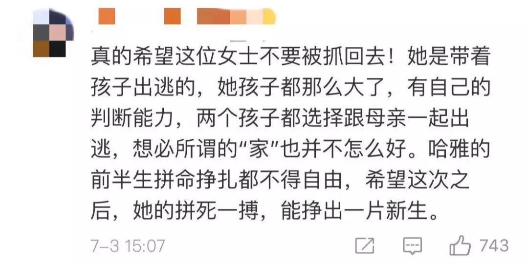 有人称赞哈雅,说她是带着孩子离开的,是位好妈妈。