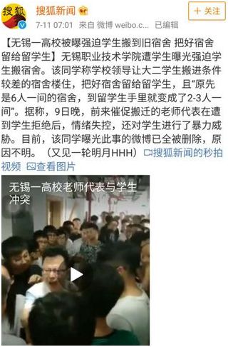 新闻还配上了前来催促的老师在学生拒绝搬迁后,情绪失控,对学生进行威胁的视频。
