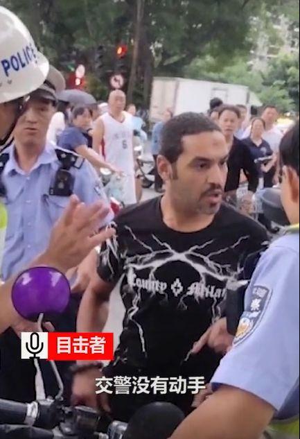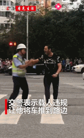显然,这个外国人违反了交通规则,可是,就当他被交警拦下后,非但没有认错挨罚,反倒向警察大声咆哮:给我!给我!