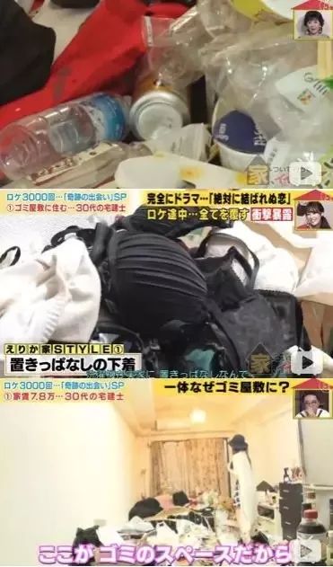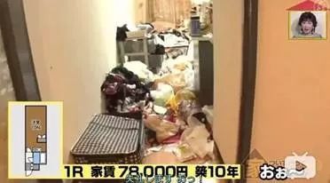 直到打开家门的那一刻,节目组被玄关上七八双散乱的鞋子打乱了节奏,原来她说“自己家很乱”,没有谦虚,里香的屋子里,衣服和各种垃圾堆积成山,没有丝毫下脚的地方: