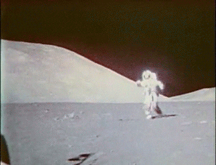 ▲宇航员哈里森·施米特(Jack Schmitt)以弹跳式步伐走向月球车