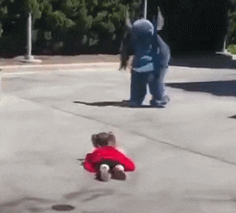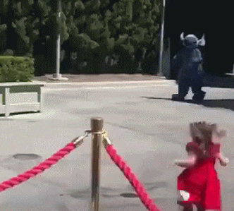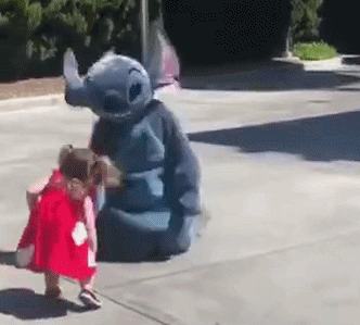 视频中,一位小姑娘正欢天喜地地跑向史迪仔,眼看着他们就要拥抱了。