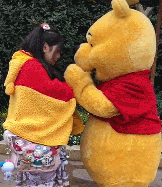 维尼熊一看到她,立马牵过她的手,贴心地帮她捂热。