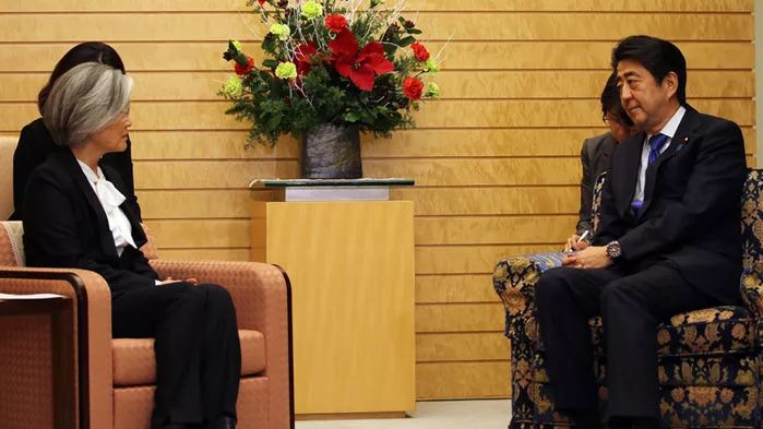 ▲韩国外长康京和曾就解决修改《慰安妇协议》问题在日本会见安倍晋三