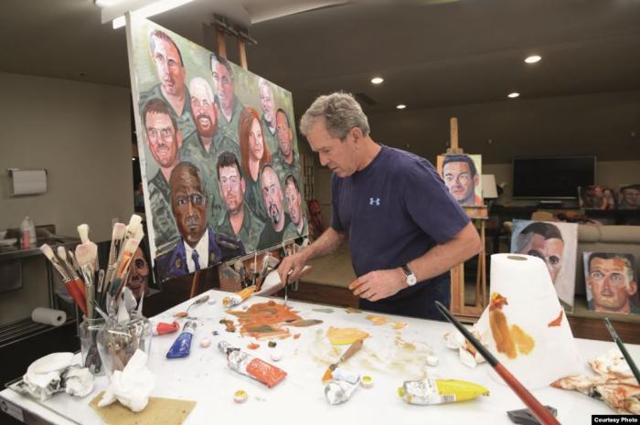 第二个要说的是同样有志向的美国前总统小布什,他总觉得自己是内心里住着一个伦勃朗(欧洲17世纪最伟大的画家之一),所以退休之后小布什开始了画画之旅,他跟自己的老师迷之自信地表示“我体内藏着一个伦勃朗,你的任务就是把他找出来。”