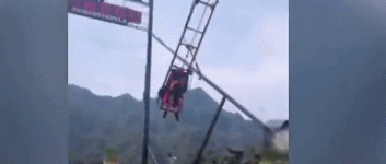 然后又很不靠谱地来回晃荡了好几下,在一片尖叫声中,秋千才慢慢停下,尽管秋千上的游客并无大碍,但估计这辈子都不想荡秋千了吧......