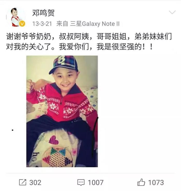 ▲ 现在从微博上依然能感受到小福娃邓铭贺的乐观与天真,然而时间在他那儿却永远凝滞