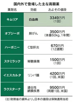 (而同样的这种药,在美国价格则高达5300万日元。差距的原因在于,与日本不同的是,美国是依照患者的治疗效果来收费,效果越好,收费越高。而日本却是无论治疗效果如何,都统一适用保险)