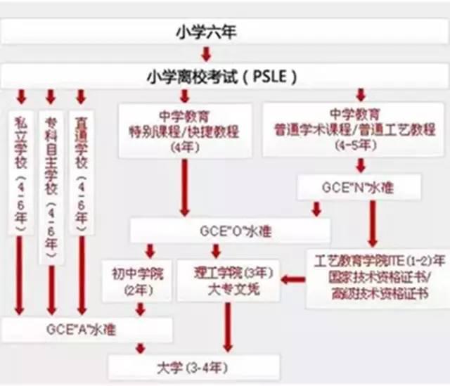 如普通班的学术与工艺课程之分,与德国的大学、普高划分非常相似;GCE水准考试,源自原宗主国英国,由新加坡教育部和英国剑桥大学考试局共同主办;按分数高低择优录取,又具有浓厚的东方教育色彩。