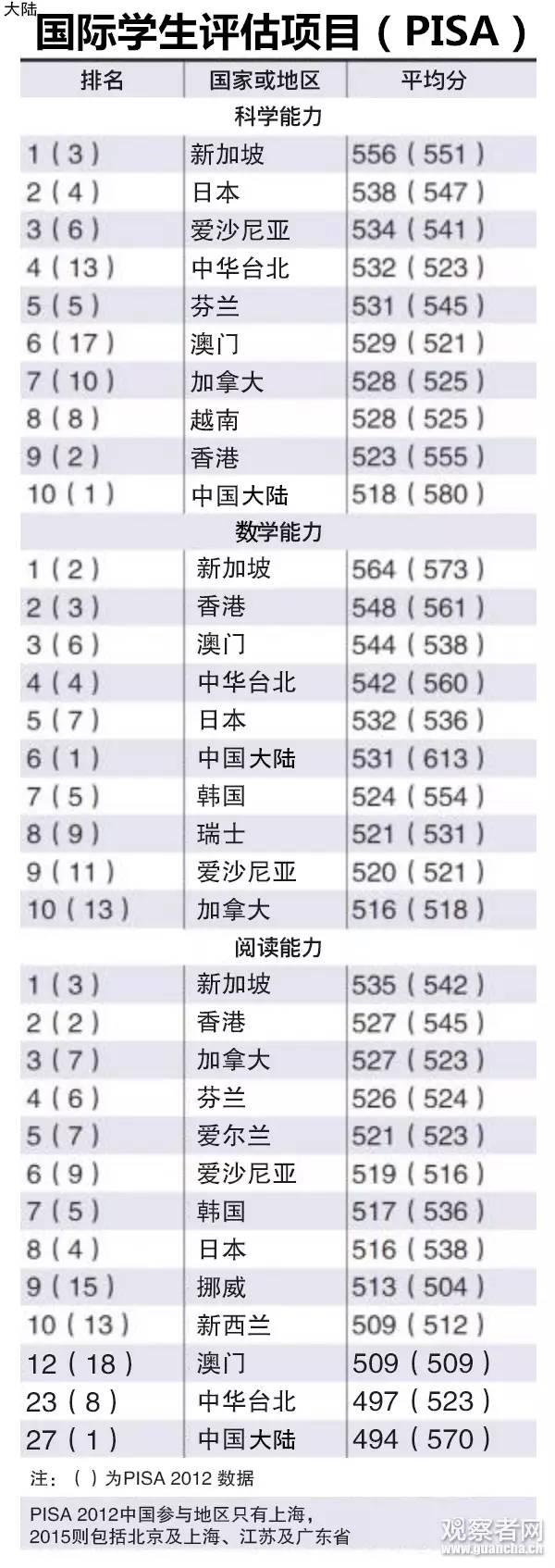 国际学生评估项目(PISA)测试有“教育界的世界杯”之誉,被认为是对学生知识技能和区域教育水平的评估。在2015年PISA测试中,新加坡学生包揽科学、阅读、数学三项第一。