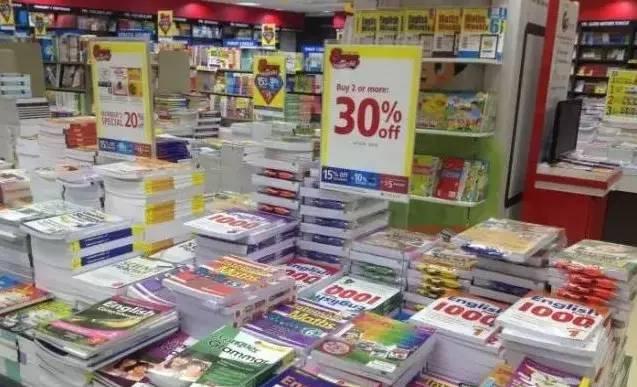 新加坡的书店里,超过一半的面积专门用来摆放各种练习题和辅导书。