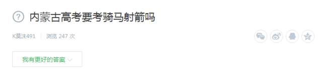 除此之外,内蒙古的童鞋们还说,他们上学靠骑马;学校是一群蒙古包,一个包里一个班;渴了喝鲜马奶,饿了就随手抓把草吃,或者出去射只鹰回来用马刀削着吃;还有,体育课不做操不跑步,专练马术、摔跤和射箭。。。