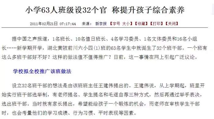 且不说日本、美国,在中国学校里,本来为大家服务的值日生,成了管人的“官”,孩子们互相攀比谁管的人多,为了做“官”费尽心机。于是,貌似单纯的学校值日,却沦为小学生官僚习气的养成所。