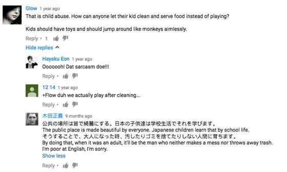 反方:“这不是童工,这是自律……这就是为什么日本是世界上最干净和最文明国家的原因。