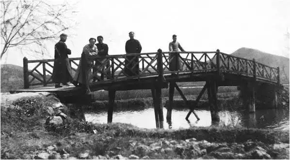 夏丏尊与好友叶圣陶、胡愈之等在春晖平屋前留影