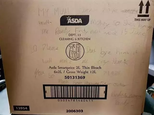几天后,神奇的事儿发生了,Leon妈妈在Facebook上看到一个帖子被转发了几百次,帖子上的照片正式儿子很喜欢的那个玩偶!点开帖子一看才知道,原来当时离开超市的时候儿子有在纸盒上写下超级暖心的留言!