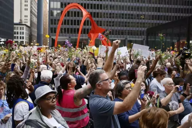 图片说明:芝加哥民众为暴力事件受害者举行纪念活动