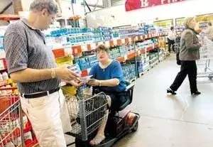 在沃尔玛等超市,各种方便残疾人购物的电动车就停在门口,方便需要的人使用;