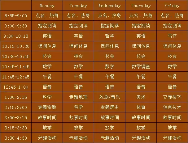 课程科目多种多样,除了英语、数学、科学等“主课”外,还有戏剧、音乐、交际技巧课程,此外还有阅读、故事时间等活动。