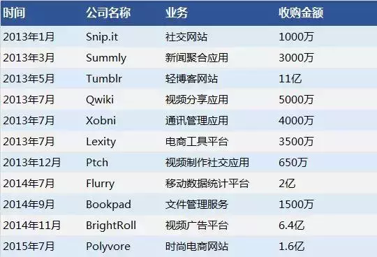 雅虎收购的部分公司