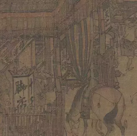 ▼这个店铺写着“解”。这个有点类似今天的银行,可以把“交子”(纸币)汇兑成硬通货。