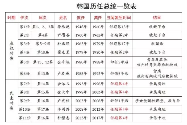 1993年至今,韩国共有5任民选总统,4任在任内爆出丑闻。诡异的是,无一例外,全部发生在第4年!