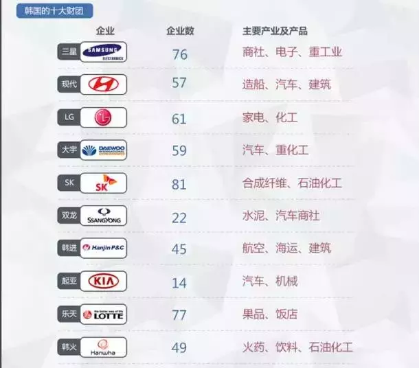 韩国的十大财阀,来源:腾讯财经