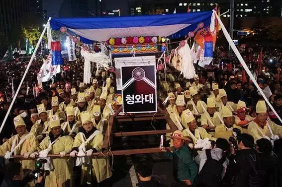 韩国百万民众民众抬棺抗议,要求朴槿惠下台