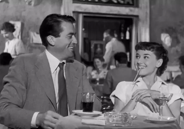 赫本的初恋是在21岁,对象是29岁的詹姆斯·汉森。彼时郎才女貌,情意殷殷,两人在《吉吉》首演4场后宣布将在巡演结束后结婚,但在这期间赫本接拍了《罗马假日》并且大获成功,两人最终还是不欢而散了。这或许是因为事业腾飞带来了隔阂加之赫本母亲极力反对,又或许如世人所料,是因为赫本移情别恋爱上了《罗马假日》里的搭档——好莱坞著名绅士、有妇之夫:格里高利·派克。