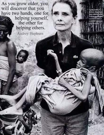 甚至在患上癌症后,赫本仍然强忍病痛奔赴索马里看望因饥荒而命悬一线的儿童,仍然半蹲着喂孩子们吃饭。而她临终前也还念叨着:“我不明白,为什么世界上总有这么多无辜的小孩子经受着如此残酷的考验……”