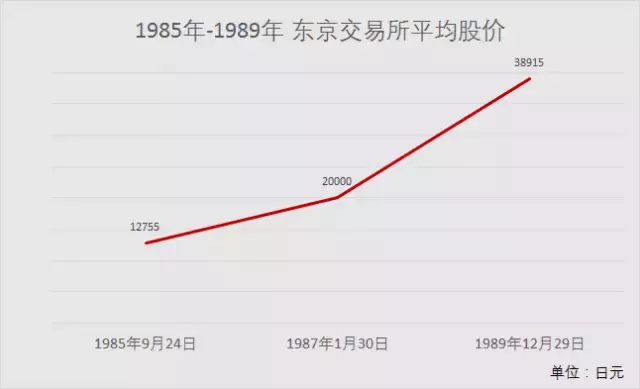 1983年到1989年,日本股票价格上升了3倍。1989年的5月2日,东京证券交易市场上市公司股价总额达到500万亿日元,占世界份额的45%,一跃成为世界最大的股票交易市场。