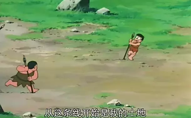 《哆啦A梦》1989年剧场版《日本诞生记》中,大熊等小学生乘坐时光机穿越到数百万年前的日本,做的第一件事就是划分土地。