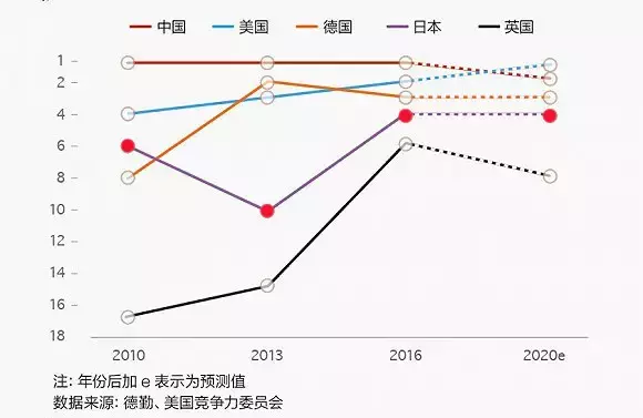 世界知名咨询公司德勤发布的《全球制造业竞争力指数》中,2016年中国排名第一,日本排名一波三折,从第六跌到第十,又上升至第四。