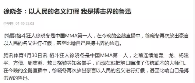 徐晓冬更发表惊人言论,要以“人民的名义”打中国传统武术的“假”。
